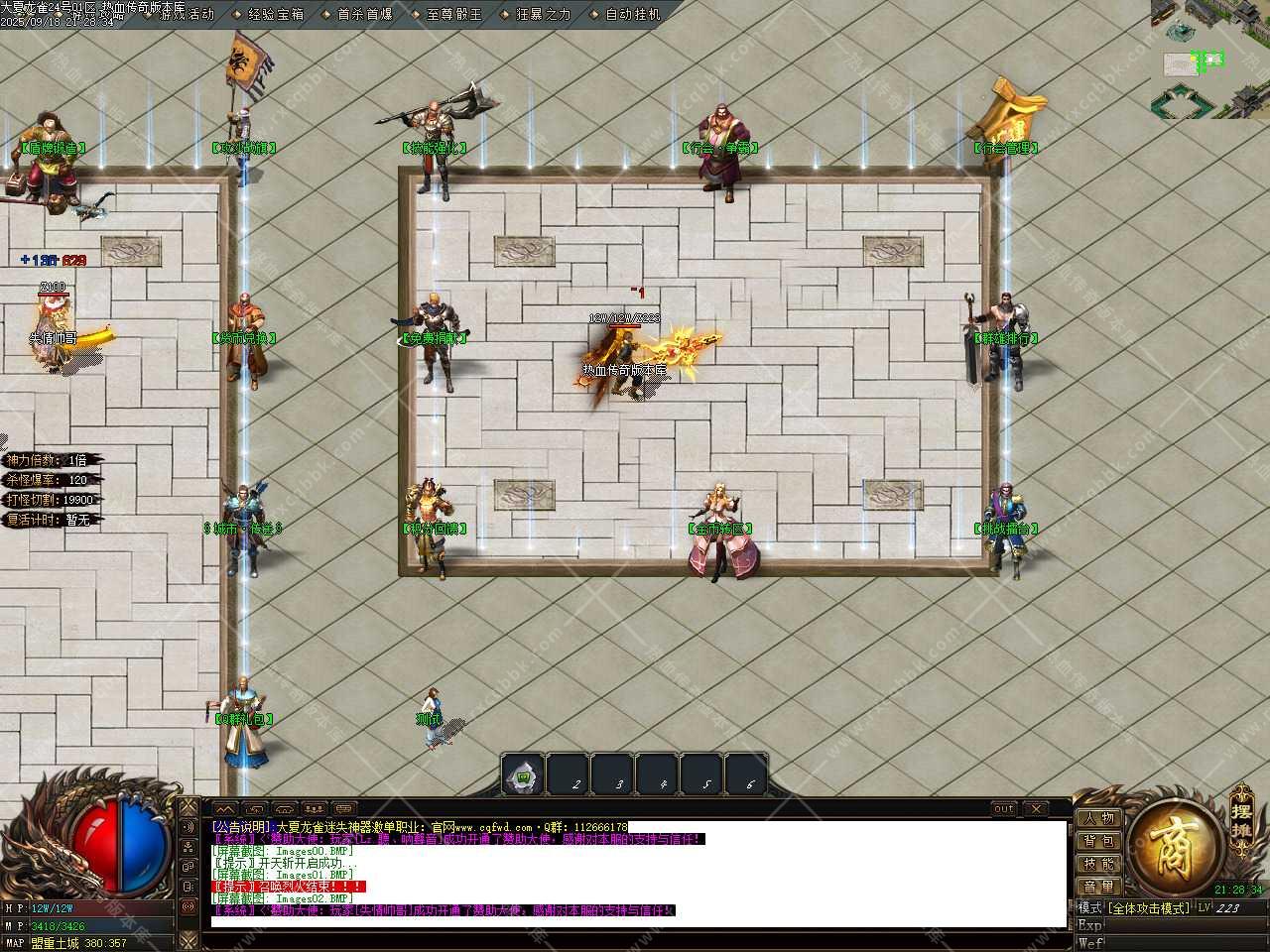 八、本服打怪核心理念:十万HP以上的怪都有几率爆终极,HP越多的怪爆率越好,神器装备只有神器怪爆,下四格加斗笠特殊全靠打没有合成!任意等级图、转生图、战力图、技能图、威名图、福利图中打超过十万HP以上怪都会几率出终极、次终极和红包。