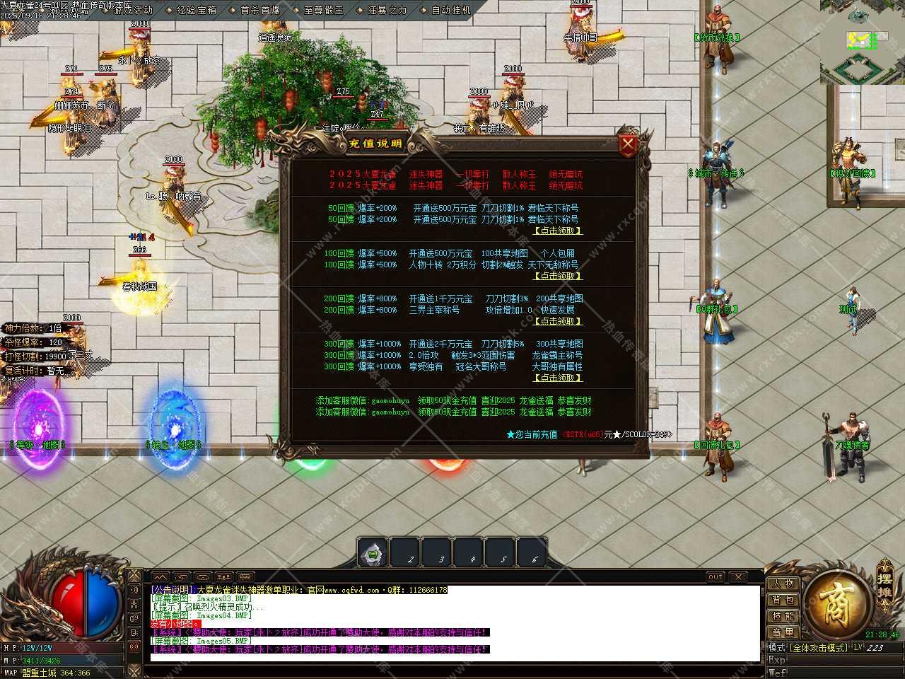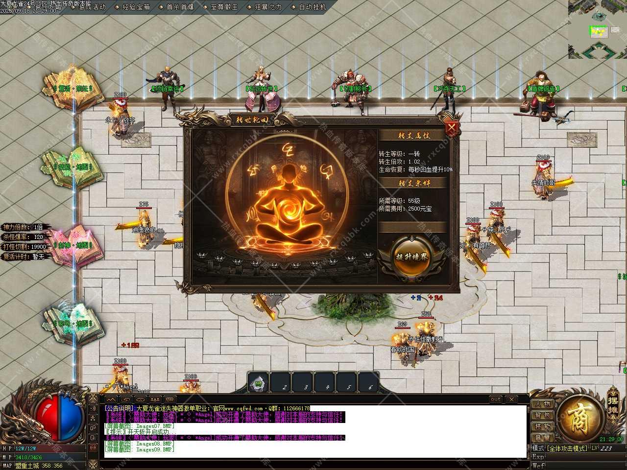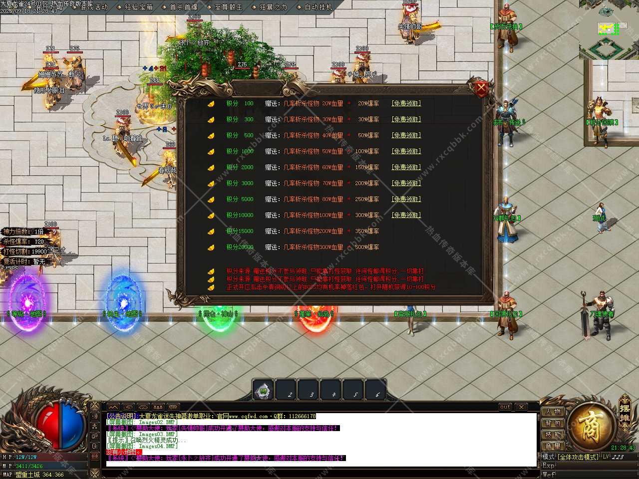 三、此版本泡点封顶100级.打聚灵珠可升级到140级(小窗口左上角点开经验吃聚灵珠)。福利地图打首爆,先做满称号再转生,各大地图刷白怪,黑色名字爆终极,运气好爆一切。