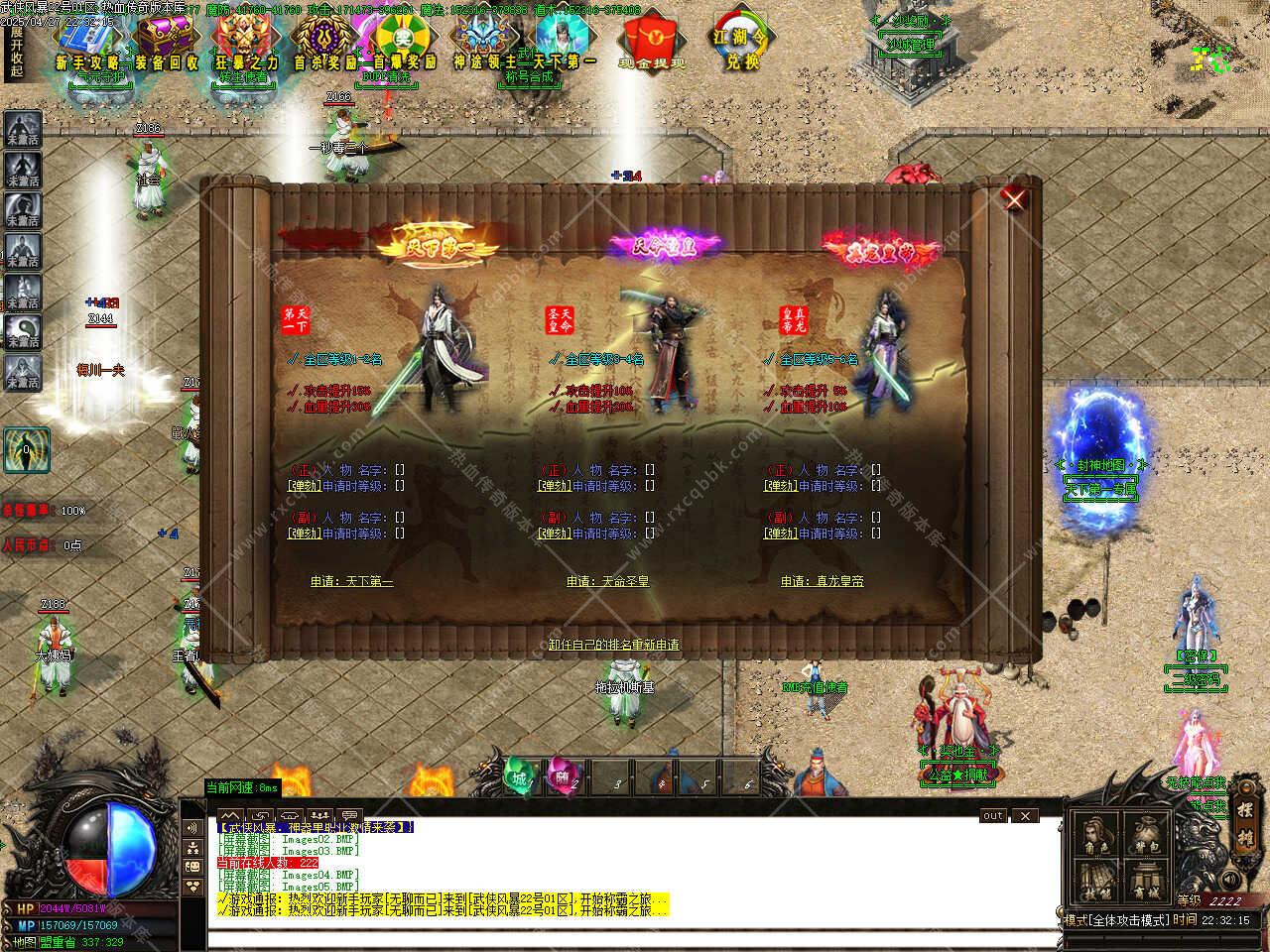 版本介绍:此传奇版本每个地图都有BOSS,BOSS每1小时刷新,刷新情况都可以在npc上查看,400级10转下二大陆,450级15转下三大陆,越后面的地图boss的爆率越高。