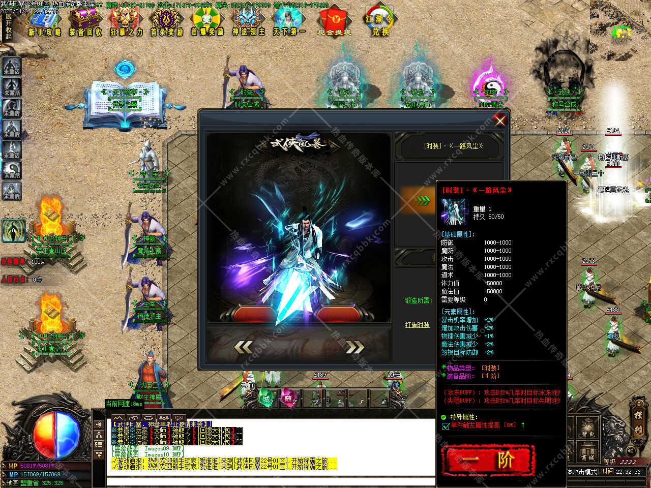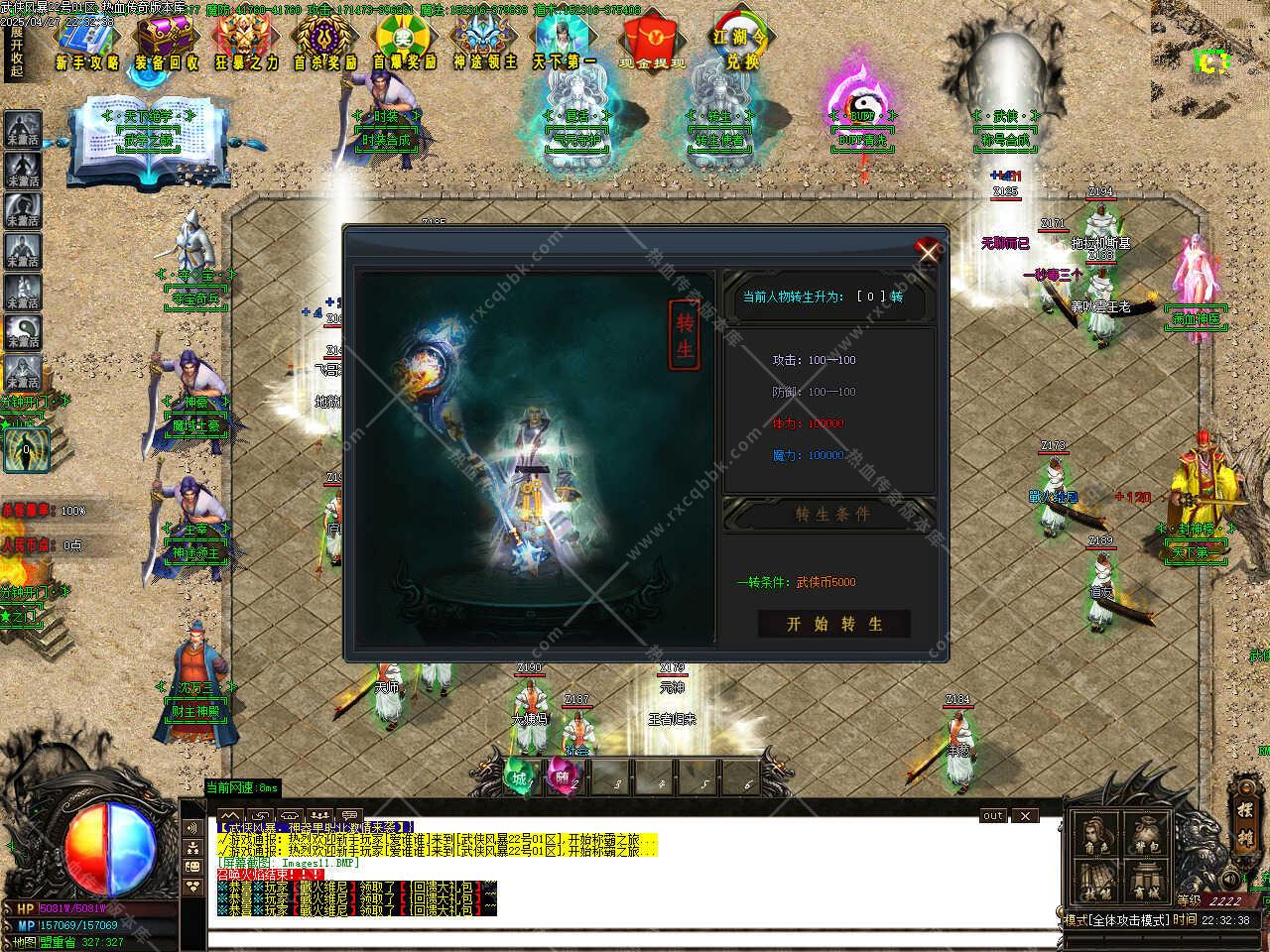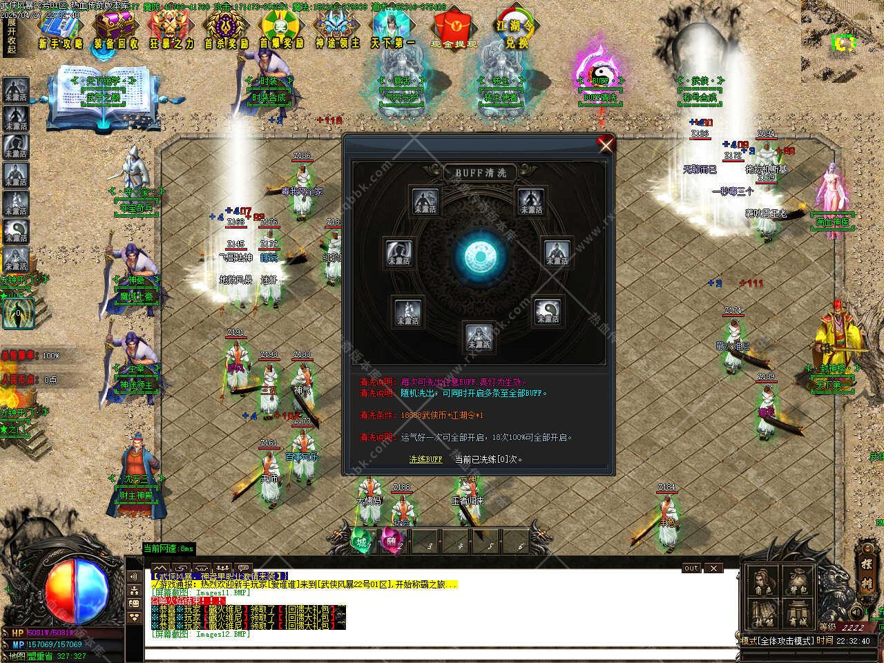 版本介绍:在主城地图按部就班的打点装备,所有地图都可以边打怪边泡级,多的装备可以回收武侠币,土城上面可以升级称号、时装、转生、武学来提升自身实力,泡到400级升到10转去土城左上角下二大陆继续提升实力。