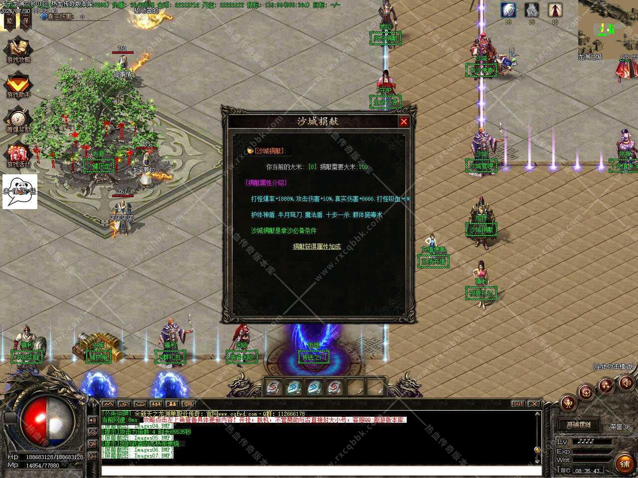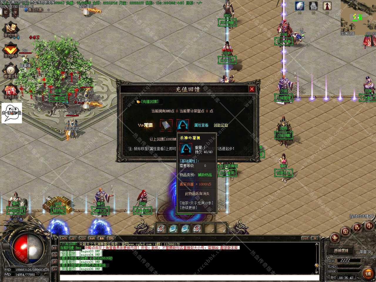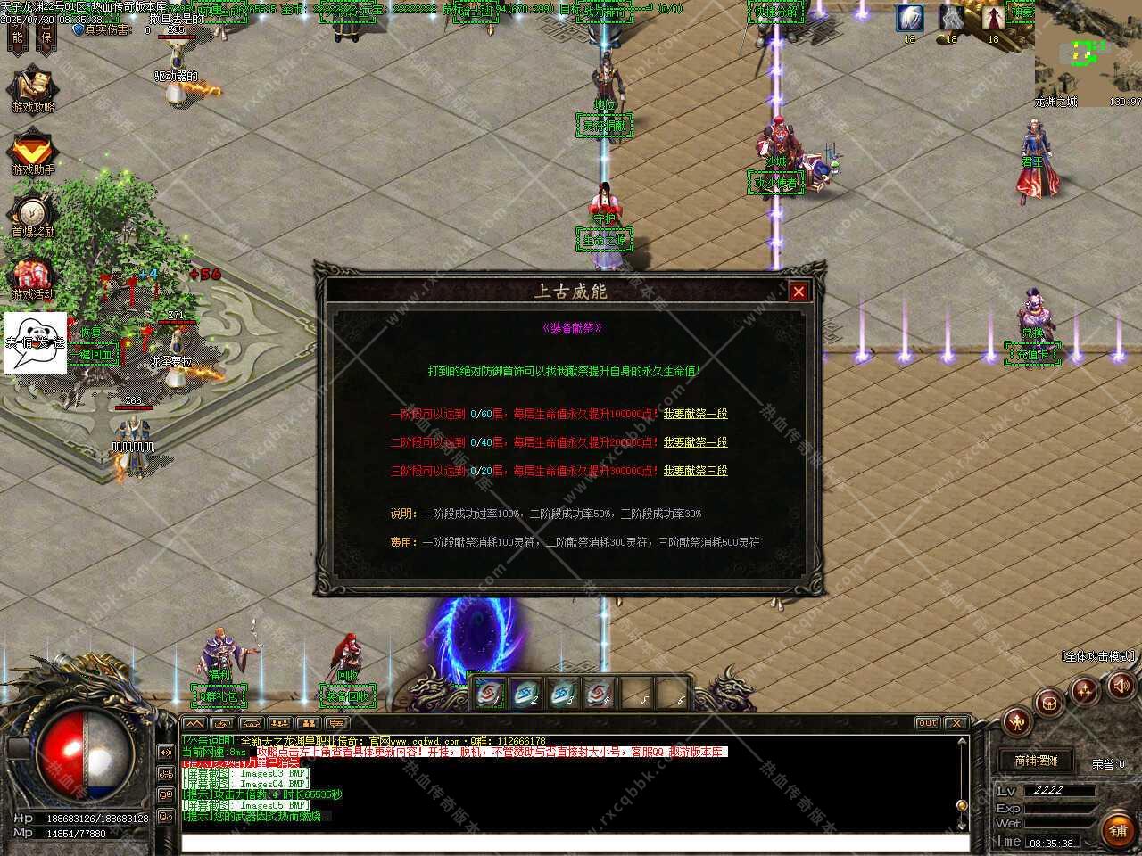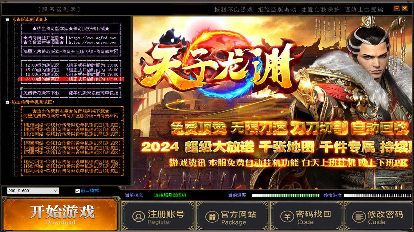 一、此传奇服务端版本补丁大小11.36GB,无二次加密补丁,建议用16周年或17周年测试,Q群兑换码是666888,版本使用了ESP和神盾插件,根据自己的需求进行选择。版本带有假人功能,清档自动上线。