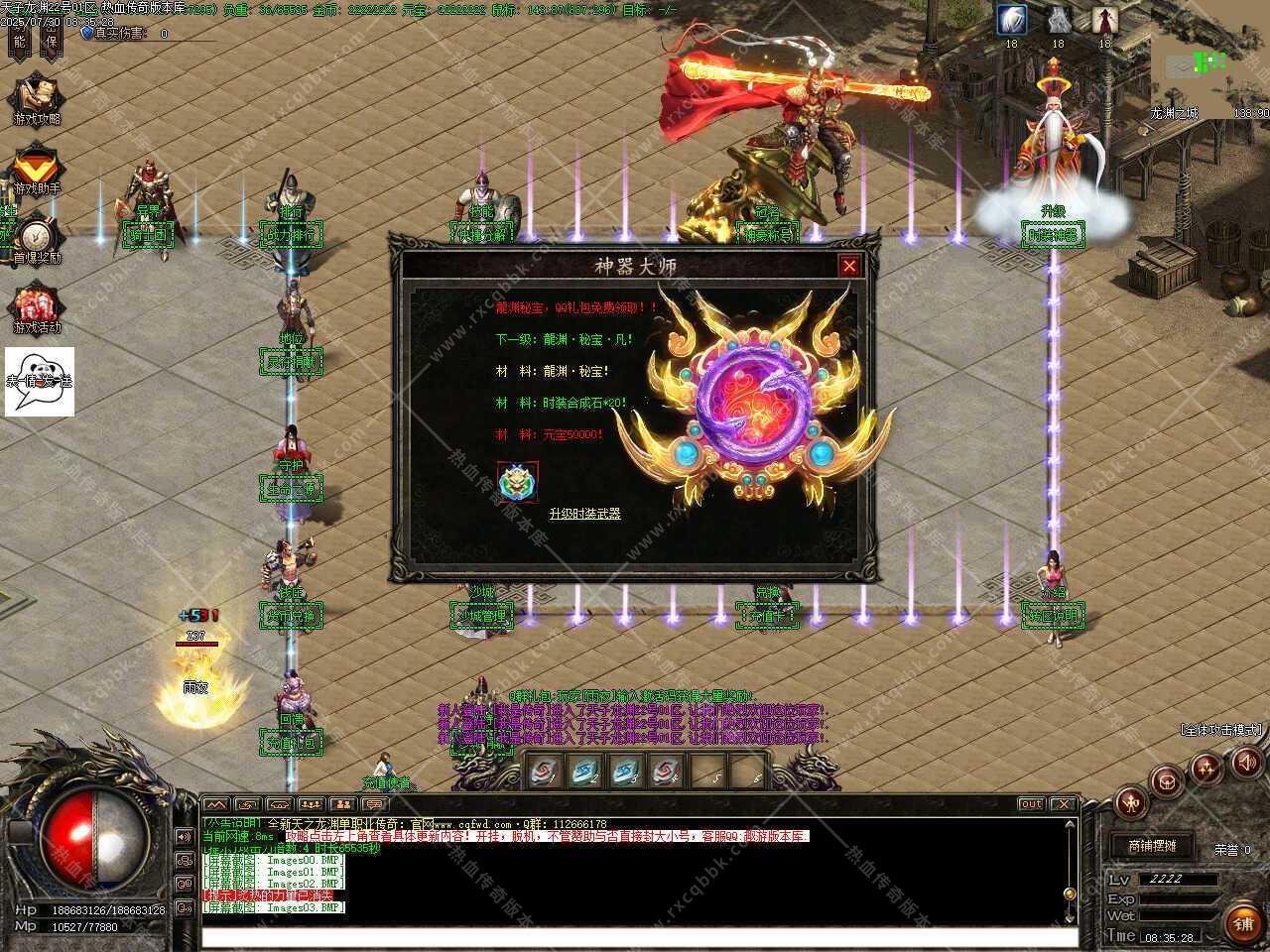 四、爆率过滤需玩家自行跟进需求设定!优化往期不回收分解物品,现已全部加入分解回收!因中后期大地图的RMB和荣誉值的需求较大!特增加中后期的RMB,荣誉值的爆率!!重新优化自动回收,分解以及回收功能,现所有装备都可回收分解!!!增加全套时装武器装备,QQ礼包免费领取初级龍渊秘宝,详情查看土城更新!