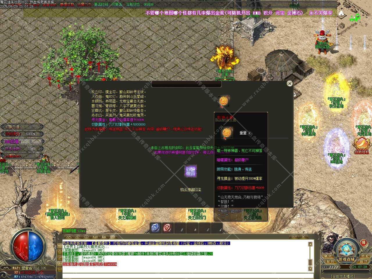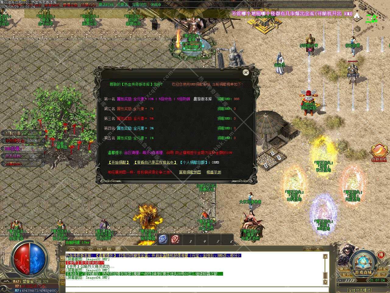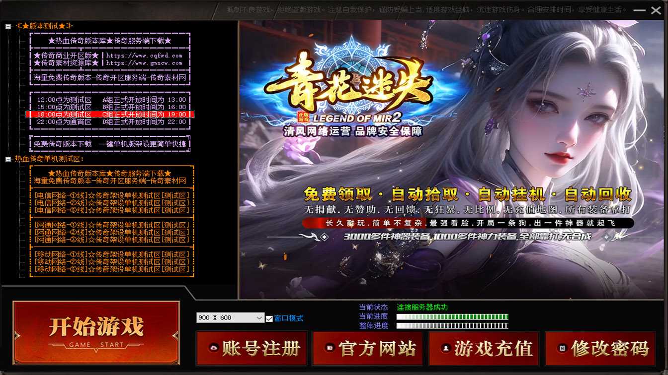 一、此传奇服务端版本补丁大小3.76GB,PAK补丁全部一次加密,测试客户端为17周年纯净客户端,游戏兑换码666888、888888,版本带有假人功能,清档自动上线。