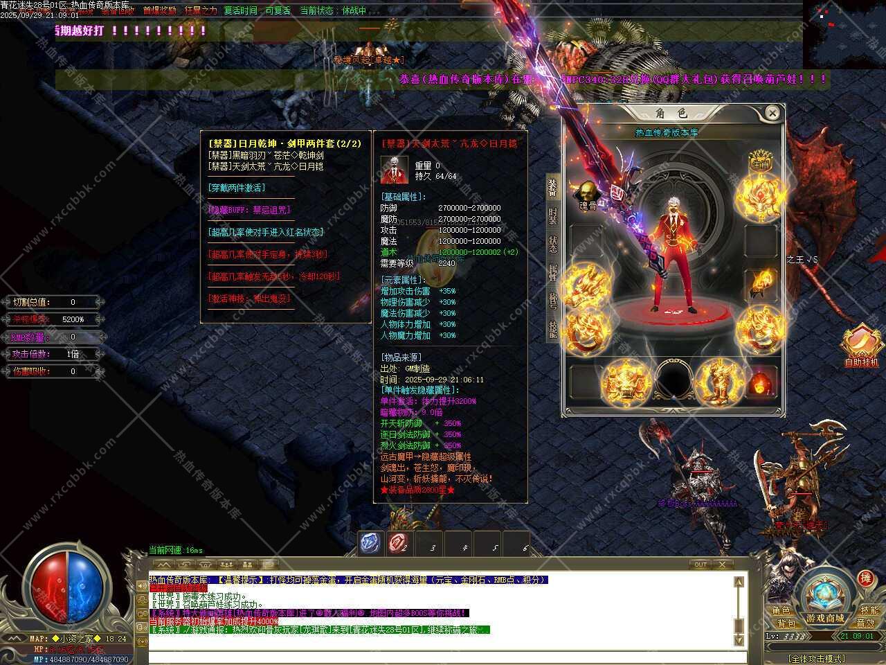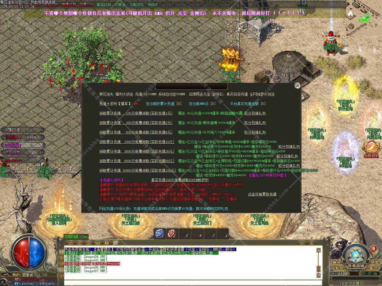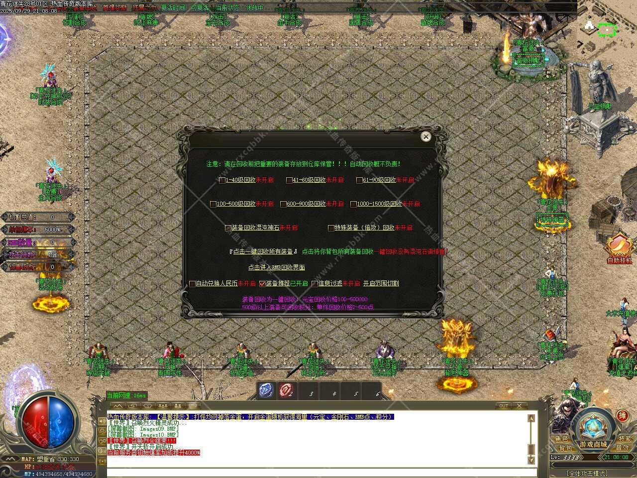 一、此传奇服务端版本补丁大小3.76GB,PAK补丁全部一次加密,测试客户端为17周年纯净客户端,游戏兑换码666888、888888,版本带有假人功能,清档自动上线。